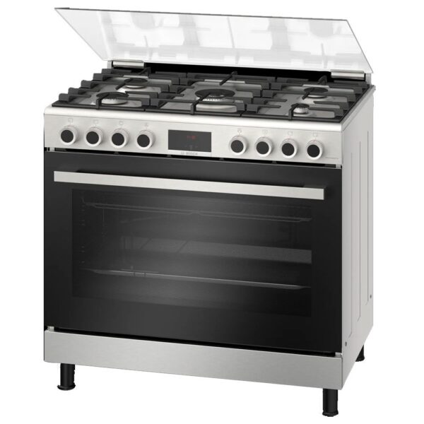 BOSCH GAS COOKER SERIES 6 5 BURNER 90*60 CM CAST IRON STAINLESS STEEL FULL SAFETY HGP3I8W50S